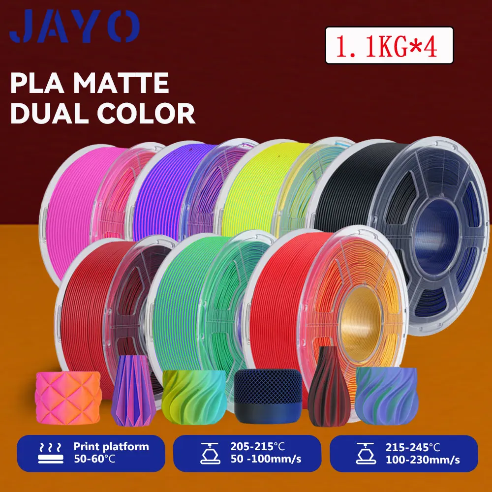 JAYO PLA Matte 3D Filament 1.75MM 4Rolls/set Dual Color PLA Matter Effect 3D Printer Filament 2 In 1 Color 3D Printing Materials